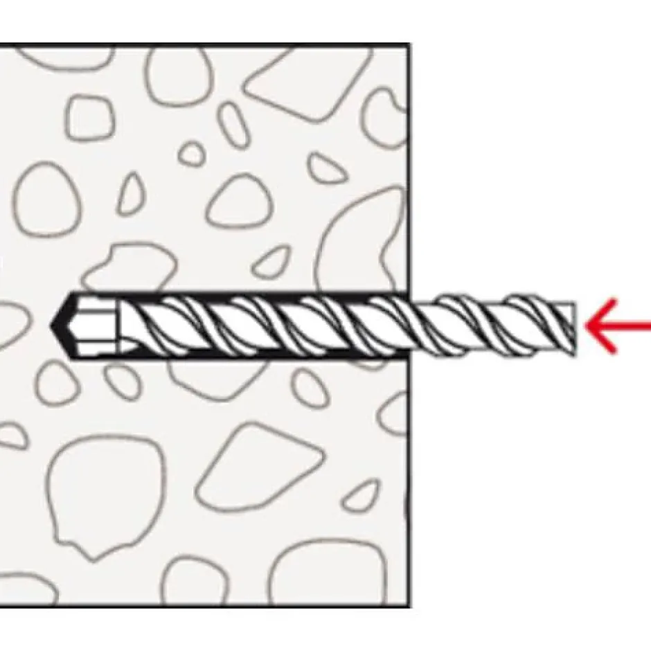 - Profondeur d’ancrage renforcée – particulièrement adaptée aux matériaux creux, béton cellulaire et traversée d’enduits.