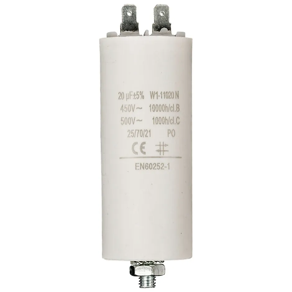 Description du produitCondensateur de démarrage 20uF / 450VInformations généralesSpécificationsCapacité: 20 uFCouleur: BlancDiamètre du boîtier: 40 mmLongueur: 95 mmNuméro de pièce d’origine: 20.0uf / 450 v + Aarde