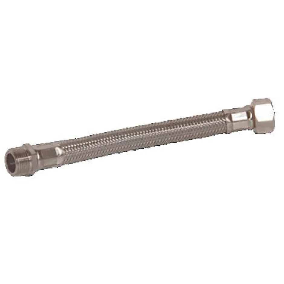 Flexible sanitaire mâle femelle.Caractéristiques techniques: Installation sur équipement sanitaire, robinet, chauffe-eau, lavabo et bidet (pour raccordements de 12/17 à 15/21) ou sur chauffe-eau, réservoir d’eau, ventilo-convecteur, climatisation et panneau solaire (pour raccordement 20/27)Température d’utilisation max: de 70 à 90°C selon modèlePression max: de 10 à 16 bar selon modèleDiamètre intérieur: de 8 à 13 mm selon modèleDiamètre extérieur: de 12 à 18 mm selon modèleFlexible intérieur en caoutchouc (EPDM)Tressage et embout métallique en acier inoxydable AISI 304Raccords en laitonRondelle en EPDM intégrée (sauf pour raccordement 20/27)Conformes aux normes ACSLes flexibles sanitaires GARIS sont garantis pendant 3 ans.