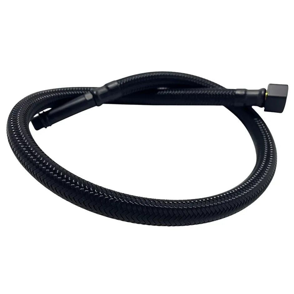 Données techniquesModèle : DN8 F3/8″ x M10Longueur : 50 cmDiamètre intérieur/extérieur : 8,5 mm / 11,3 mmFiletage 1 : 3/8″Filetage 2 : M10 (douille longue)Couleur : NoirTempérature maximale de service : 95°CPression de service maximale : 15 barPression d’éclatement : 35 barPourquoi le choisir ?Tuyau intérieur PEX – haute résistance à la température et à la pressionGaine plastique noire – durabilité et aspect moderneInsert en laiton et acier inoxydable AISI 304 – connexion stable et étancheJoints en silicone / EPDM – protection fiable contre les fuitesNorme de raccordement européenne – compatible avec la plupart des robinetteriesUn petit élément, une grande responsabilitéBien qu’il paraisse insignifiant, le flexible d’alimentation reste sous pression 24 heures sur 24. En choisissant un flexible PEX de haute qualité avec gaine protectrice, vous minimisez le risque de fuites soudaines et de dégâts coûteux dus à des inondations. C’est un choix conscient de sécurité – pour vous et votre maison.Une esthétique qui fait la différenceLa gaine noire s’accorde parfaitement avec les robinetteries modernes et les installations de style loft ou industriel. Un détail visible sous le lavabo ou l’évier qui fait vraiment la différence. Fonctionnalité et design vont ici de pair.Technologie PEX – durabilité à long termeLe tuyau intérieur en PEX offre une excellente résistance à la chaleur, à la pression et au vieillissement du matériau. Même après des années d’utilisation, il reste flexible et étanche. Une solution éprouvée pour la salle de bains comme pour la cuisine.