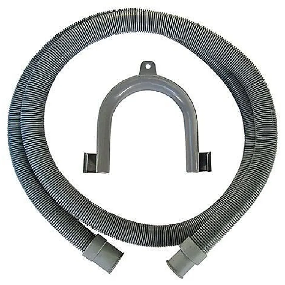 Flexible d’évacuation lave-linge 2,50 m en polypropylène, embouts Ø19/Ø22 mm, canne annelée pour grande souplesse, crosse amovible en PVC pour fixation murale, couleur gris, usage intérieur, facile à installer.