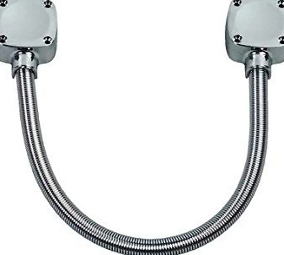 Passe câble renforcé avec élingue – Chapeau de fixation avec 2 points de fixation – Diamètre extérieur 11 mm – Longueur 30cm- Résistance à la traction : 50 kg – Finition Acier chromé – Diamètre Intérieur 7 mm.Idéale pour passer le câble entre une partie fixe et mobile, tel que portail, portillon …Permet de protéger votre câble grâce à sa gaine renforcé flexible, et de rendre votre installation plus esthétique.