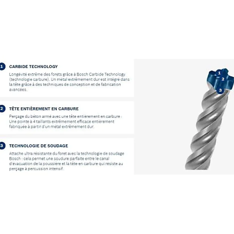 Ces forets Bosch Expert SDS-Plus 7X bénéficient d’une tête entièrement en carbure (Bosch Carbide Technology) assurant une durabilité largement supérieure à la moyenne. Ils peuvent ainsi perforer avec efficacité le fer d’armature sans besoin d’arrêts, de recentrages ou de changements de foret quand ils entrent en contact avec de l’acier. Aussi, ils conviennent à tous les marteaux-burineurs SDS-Plus.Caractéristiques techniques :Forets béton pour perforateurTête entièrement en carbureMatériau : béton arméDomaines d’application :Perçage de trous dans le béton arméFixation des installations intérieures telles que la climatisation, les tuyaux de chauffage, le câblage électrique et l’éclairageIdéal pour les agenceurs : durable et puissant