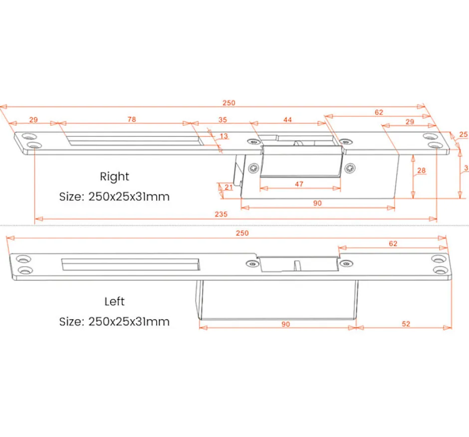 Gâche électrique pour porte ou portillon avec pose en saillie.Gâche électrique de portillon de qualité professionnel réversible installation droite ou gauche :Dispose du passage pour loquet de serrure. La gâche électrique est un accessoire très régulièrement pour verrouiller et déverrouillé électriquement une porte à l’aide d’un interphone, visiophone, digicode…Dimensions :- hauteur 250 mm- largeur 25 mm- profondeur 31 mmVous vous posez la question:Comment ouvrir ma porte à distance, installer une gâche électrique sur votre porte.Très simple d’installation, la gâche électrique pour portillon ou porte peut être posée sur toutes les installations en applique à condition de ne pas utiliser, si elle est présente, la condamnation de la porte avec la serrure. Dans le cas du verrouillage du loquet, le système d’ouverture électrique est inopérant.Cette gâche électrique de portillon est à mémoire de position: C’est à dire qu’une fois l’impulsion 12V fini la gâche reste libre tant que le visiteur n’a pas poussé la porte. Très pratique pour laisser le temps au visiteur de pousser la porte. Les gâche électrique à impulsion nécessite que l’impulsion dure longtemps le temps que le visiteur passe.Gâche électrique de portillon avec ouverture à émission et à mémoire de position.Tension de fonctionnement: 12VDC +/-10%Courant de consommation: 0.8ATempérature d’utilisation: -40°C à +50°CHumidité: 10% à 90%