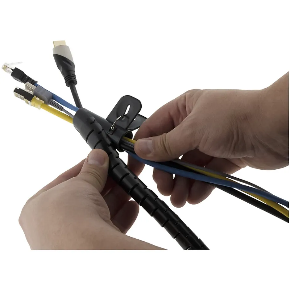 Gaine range câble. Couleur(s) : noir. Diamètre : Ø20mm. Longueur : 1,5m. Pince d’insertion pour faciliter l’insertion des câbles dans la gaine. Masquage discret des câbles tout en conservant un aspect propre et esthétique. Organise les câbles pour éviter les enchevêtrements. Parfait pour les installations multimédias à la maison ou au bureau. Facile à installer grâce à la pince d’insertion incluse. Convient pour différents types de câbles de TV, Hi-Fi, informatique, etc