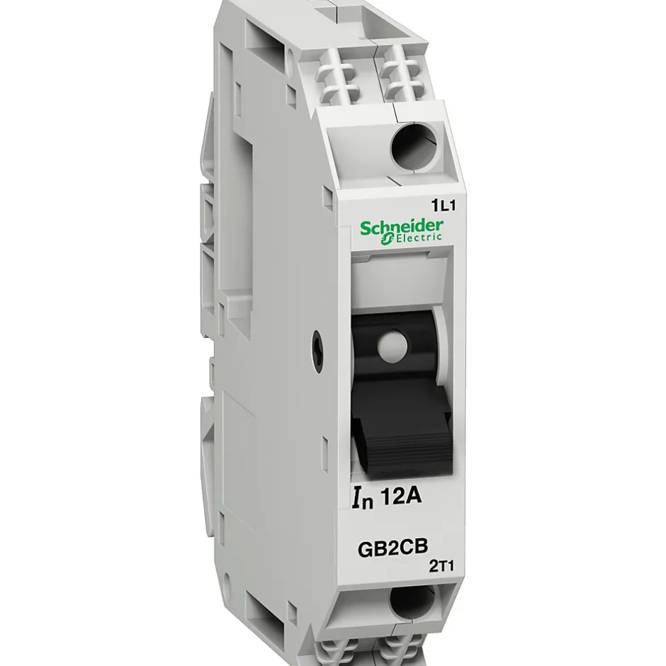 Disjoncteur pour circuit de commande moteur 1P 5A – Schneider GB2CB10Les disjoncteurs de la gamme GB2-CB sont utilisés en industrie pour protéger et sectionner les circuits de contrôle de moteurs électriques industriels (bobine de contacteur, transformateur primaire/secondaire).Le disjoncteur Schneider Electrique GB2CB10 possède un seuil de déclenchement thermique entre 12 et 16 fois l’intensité nominale pour supporter les pics sur les installations industrielles.Les spécificités du disjoncteur GB2CB10Fabriqué en FrancePolarité1PCalibré à 5A