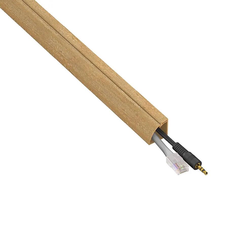 Goulotte D-Line 22x22mm effet bois vernissable, idéale comme contre-plinthe et corniche grâce à son profil quart de cercle. Grâce à son effet bois la goulotte est parfaite pour cacher les câbles sur un plancher bois, sol stratifié, et autour du parquet. Avec son design unique la goulotte peut être vernie selon la couleur de votre plancher en bois. Sa conception en une seule pièce avec charnière et verrouillage permet une installation rapide et permet l’insertion et l’enlèvement des câbles une fois que la goulotte est installée. Kit d’accessoires aussi disponible.