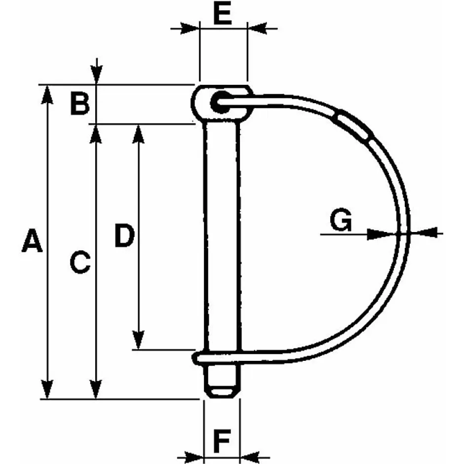 Goupille arceau ø 7 sous blister (5pcs) -A mm : 56.0B mm : 6.0C mm : 50.0D mm : 45.0E mm : 16.0F mm : 7.0G mm : 2.5Ø de l’arbre mm : de 40 à 56