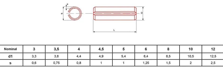 Caractéristiques techniques : Type : goupille élastique.Finition : brut.Normes :DIN 1481.ISO 8752.