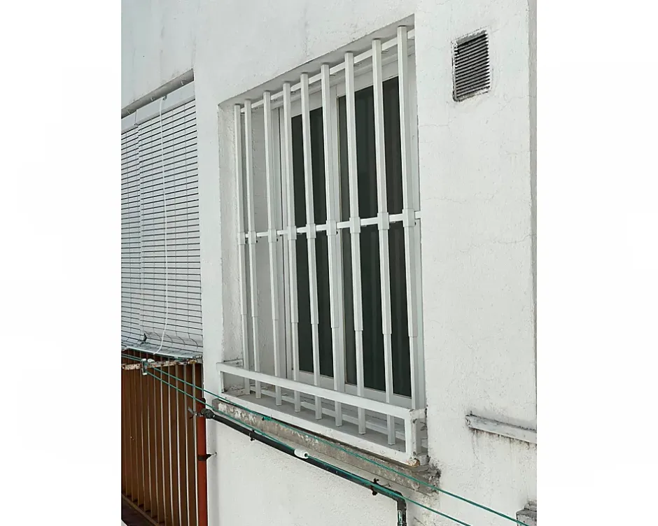 Grille de fenêtre adaptable à toutes dimensions (largeur et hauteur), fabriquée en acier avec finition peinture électrostatique au four. Ajustement extraordinaire. Montage facile par vissage. Sécurité maximale immédiate