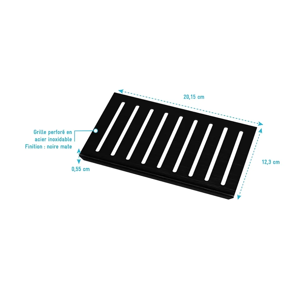 Personnalisez votre receveur de douche ROCK 2 en choisissant une grille qui vous correspond. Nous avons conçu cette grille en INOX, aux motifs linéaires, afin que vous puissiez personnaliser votre receveur comme bon vous semble. Esthétique grâce à sa finition Noir Mat et son design contemporain , cette grille s’adaptera parfaitement à votre salle de bains. Elle viendra remplacer le cache-bonde de finition ardoisée inclus et pré-monté sur les receveurs ROCK 2.Simple et rapide d’installation, elle facilitera le nettoyage de votre receveur. CARACTERISTIQUES TECHNIQUES Dimensions : 20,15cm x 12,3cm x 0,55cm Inox Finition Noir Mat COMPATIBLE AVEC NOS RECEVEURS ROCK 2 WHITE ROCK 2 GREY ROCK 2 BLACK Référence produit : FAC1001 Garantie 2 ans Référence produit: FAC1001