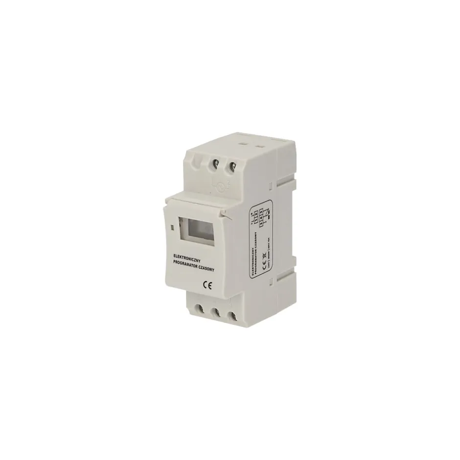 Interrupteur horaire programmable avec écran LCDCette horloge modulaire est programmée par les boutons positionnés sur sa face avant. L’écran est les boutons de programmation sont protégés par un clapet.Ce programmateur modulaire doit être installé sur un circuit de tension 230V et d’intensité 16A. Néanmoins nous vous conseillons de le relayer à un contacteur modulaire pour préserver la durée de vie des contacts.l’avantage de cet interrupteur horaire est qu’il intègre 16 emplacements de mémorisations pour vos programmes. Grâce à cette horloge modulaire vous pouvez adapter vos programmes pour un besoin quotidien ou hebdomadaire. Il permet d’adapter la programmation sur un jour unique, sur un groupe de jours, sur une plage horaire…Il dispose d’une excellente précision de l’ordre de +/- 1min par mois.Si l’interrupteur horaire n’est plus alimenté en courant, il dispose d’une réserve de marche de 15 jours avec mémorisation des programmes.