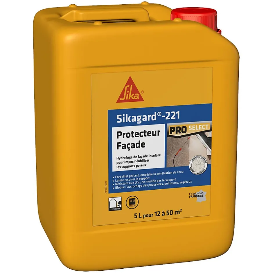 Sikagard-221 Protecteur Façade est un hydrofuge de surface pour les supports poreux de la construction, permettant ainsi de garder l’esthétique des façades et pignons en bloquant l’humidité. Il permet le lessivage des salissures et empêche la croissance des végétaux. Ce protecteur imperméabilise les façades sans en modifier l’aspect.