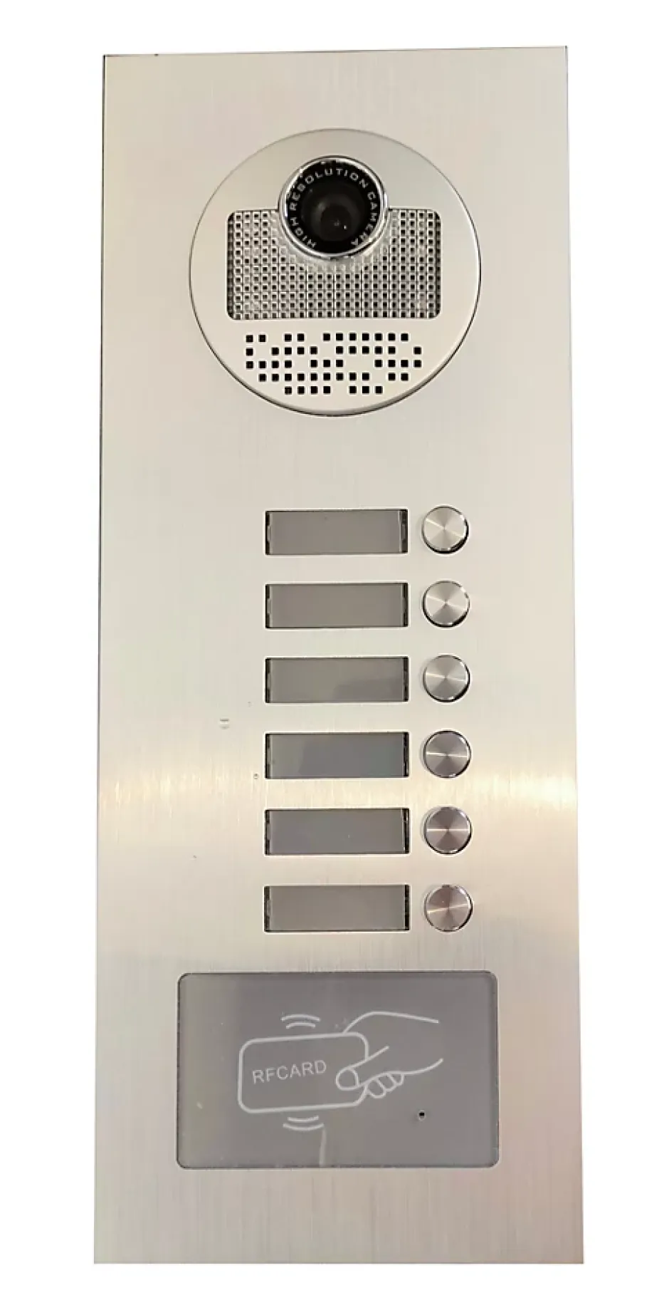 Votre immeuble dispose de 6 appartements et vous avez besoin d’un système visiophone pour vos logements?Alors ce modèle est un excellent choix.Cet ensemble visiophone collectif couleur comprend une platine de rue 6 boutons avec fonction lecteur de badges RFID et 6 écrans couleur 7 pouces 17 cm de diagonale . Un grand écran permettant de voir confortablement vos visiteurs.La platine de rue dispose de 6 portes noms nominatifs et de la fonction lecteur de badges RFID, fourni avec 2 badges de gestion et 8 badges utilisateurs.Ce visiophone pour immeuble est très complet avec sa platine lecteur de badges et ces grands écrans couleurs.Caméra extérieur en métal.Bouton en métal très résistant, le tout entièrement étanche pour pose en extérieur IP65.5 Leds infrarouge permettent une excellente vision de nuit. Sortie de commande gâche électrique.La platine de rue de ce visiophone collectif pour appartements dispose à l’arrière de 6 connecteurs, 1 connecteur par bouton. La liaison se fait en 4 fils pour chaque bouton partant de la platine de rue jusqu’au poste intérieur. (Distance max 100M en 0.65mm2 entre chaque éléments et 200M max en section de fils compris entre 1.5 mm2 et 2.5 mm2Caractéristique platine de rue :Camera : CMOS : 300,000 pixels6 leds infra rougeConsommation en vieille : 0.1WConsommation sur ouverture de serrure : 12WAngle de vision de la camera : 130°Température d’utilisation optimale : -15°C à + 50°CDimensions: 330 x 127 x 46 mmCaractéristique poste intérieur du visiophone collectif :Ecran: 7 pouces couleur TFT, Diagonale 17cmConsommation en vieille: 0.5W et en communication: 8WTemps de mise en relation max: 120s +/-10%Température d’utilisation -15°C à +50°CDimensions poste intérieur: 225 x 140 x 25 mmAlimentation par transformateur externe fourni 220/14V 1A