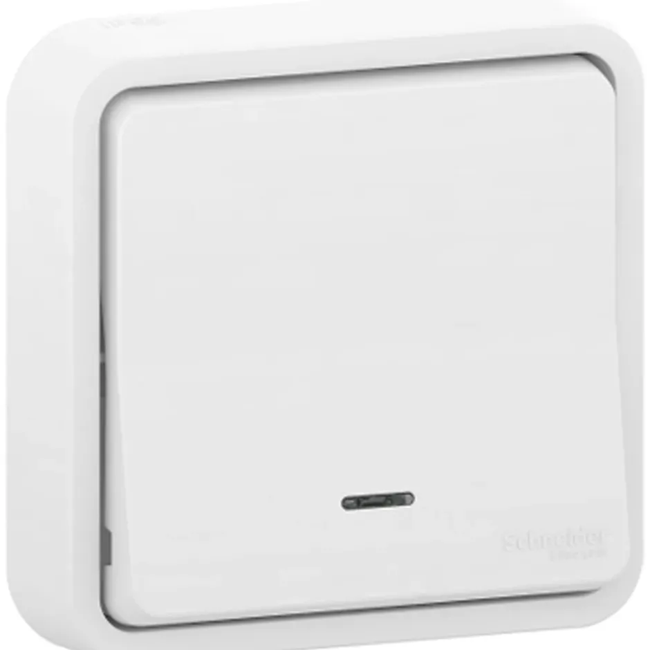 Interrupteur poussoir lumineux étanche complet encastré Schneider Electric Mureva Styl blanc
