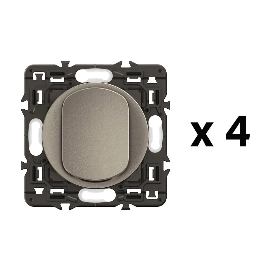 Lot 4 interrupteurs ou va-et-vient Céliane 10AX à bornes automatiques – livrés avec enjoliveurs Titanium et supports montés, à équiper de plaques de finition