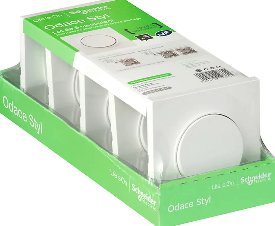 Lot de 5 interrupteur va-et-vient Schneider Electric Odace blanc complet