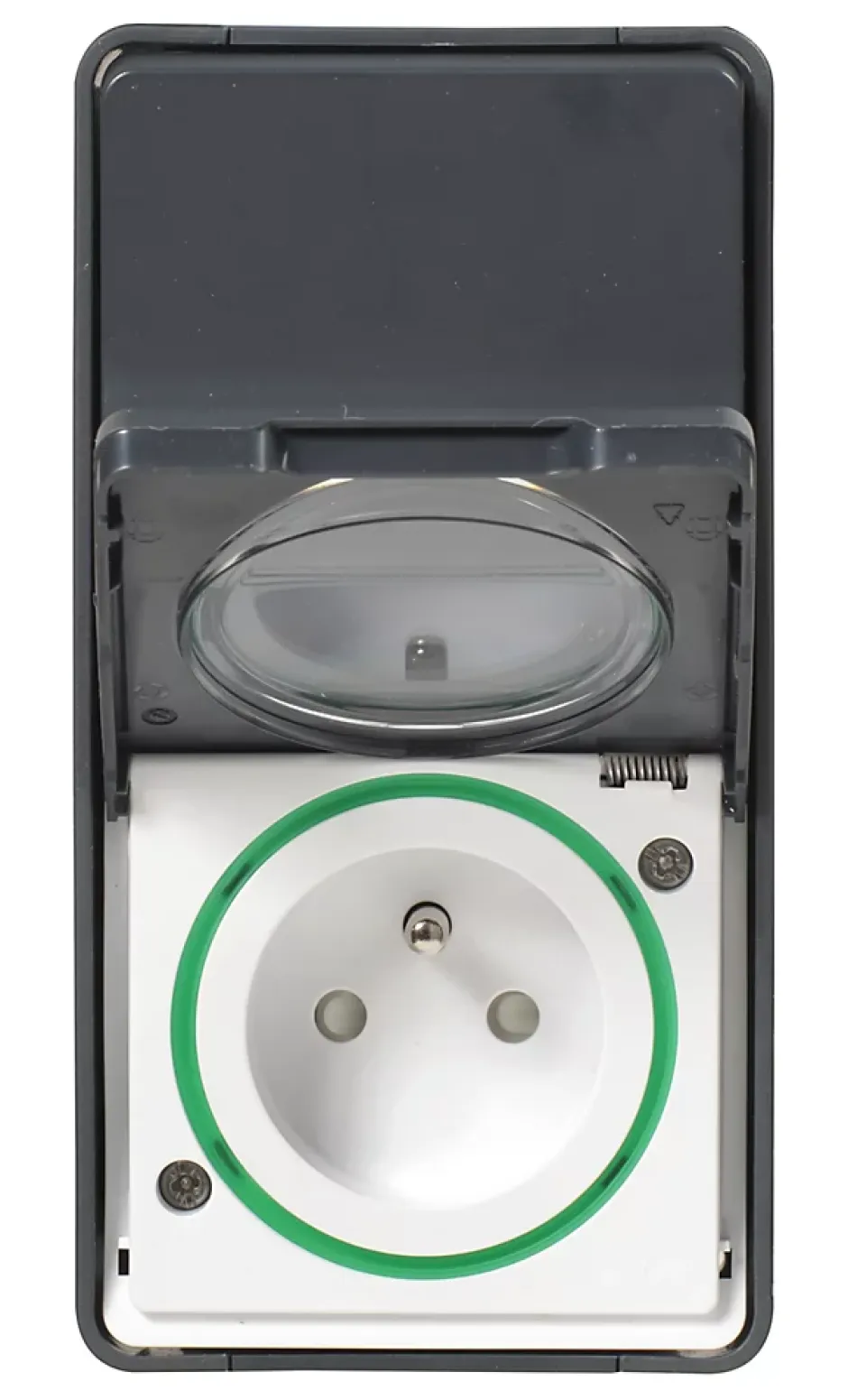 Interrupteur va-et-vient + prise avec terre verticale étanche complets saillie Schneider Electric Mureva Styl anthracite