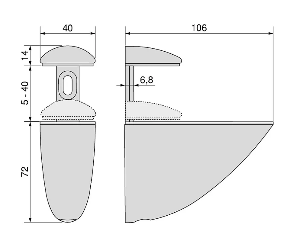 Supports muraux pour le maintien d’étagères en bois ou en verre dans toutes les pièces de votre maison.Elles ont un design élégant qui transforme la ferrure en élément décoratif. Les supports sont fixés au mur de la pièce pour créer des étagères, à l’aide des bouchons et vis inclus.Les supports sont dotés d’un couvercle inférieur mobile qui s’adapte à l’étagère par-dessus le couvercle supérieur, éliminant ainsi le besoin de trous spéciaux ou d’usinage dans l’étagère. Il est nécessaire d’installer deux Supports par étagère, et ils sont compatibles avec des épaisseurs allant de 5 à 40 mm.Conforme à la norme UNE EN-14749:2006 (meubles conteneurs à usage domestique et de cuisine).Fabriquée en plastique et en zamak avec une finition gris métallisé. VOIR LES MESURES DU PRODUIT DANS LES IMAGES. Supports pour étagères avec un design élégant et décoratif pour toutes les pièces de votre maison. Parfaits pour la fixation d’étagères en bois ou en verre et pour créer des étagères murales.La partie inférieure est mobile afin de resserrer l’étagère contre la partie supérieure. Ainsi le montage ne requiert ni pré-perçage ni usinage.UNE EN 14749:2016 vc 2017 , 75 kg
