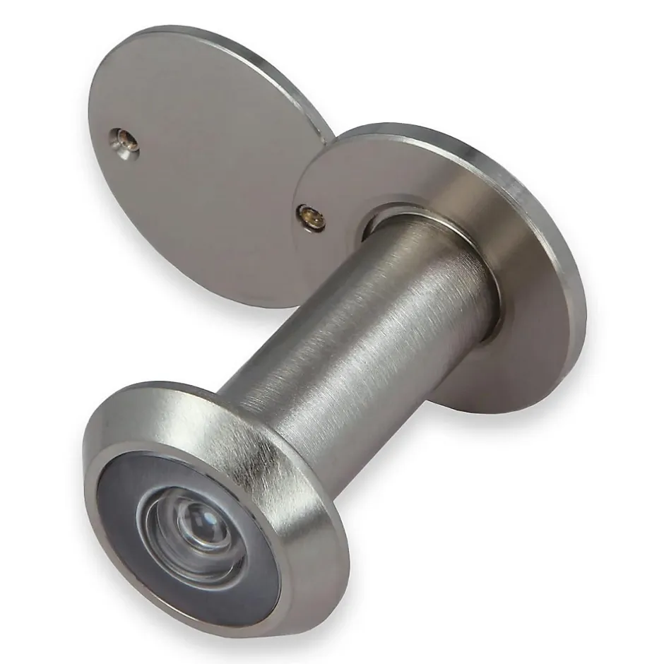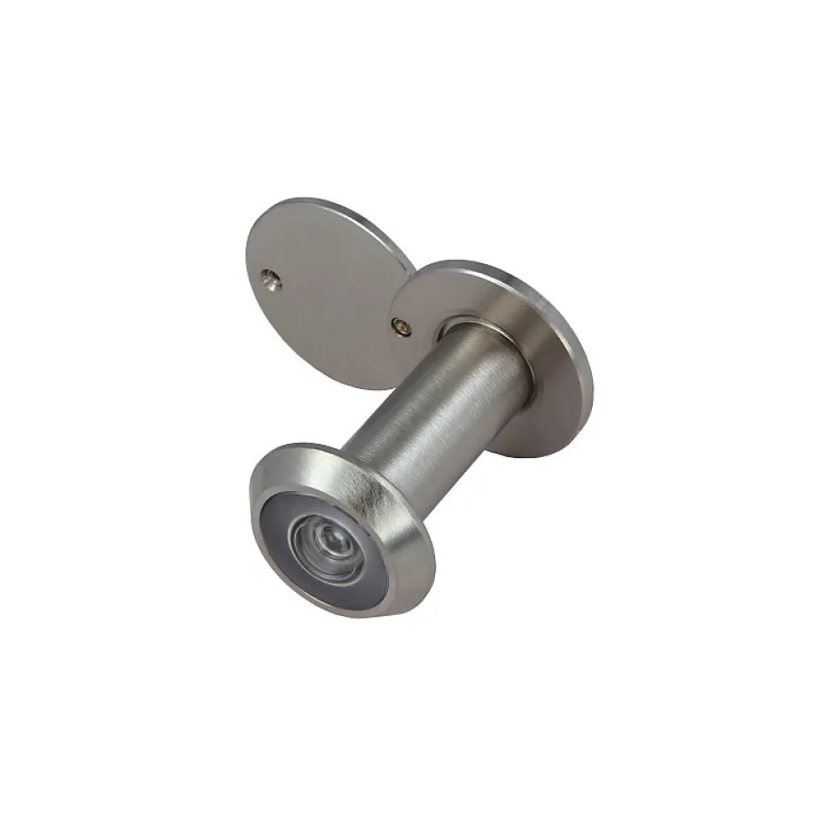 Judas optique, super angulaire. Dans des emballages individuels. Couvercle arrière solide. Lentille optique de haute qualité. Angle de vision superangulaire de 160 degrés. Construction en laiton massif. Couverture arrière spéciale qui offre le plus haut niveau de protection et de sécurité.