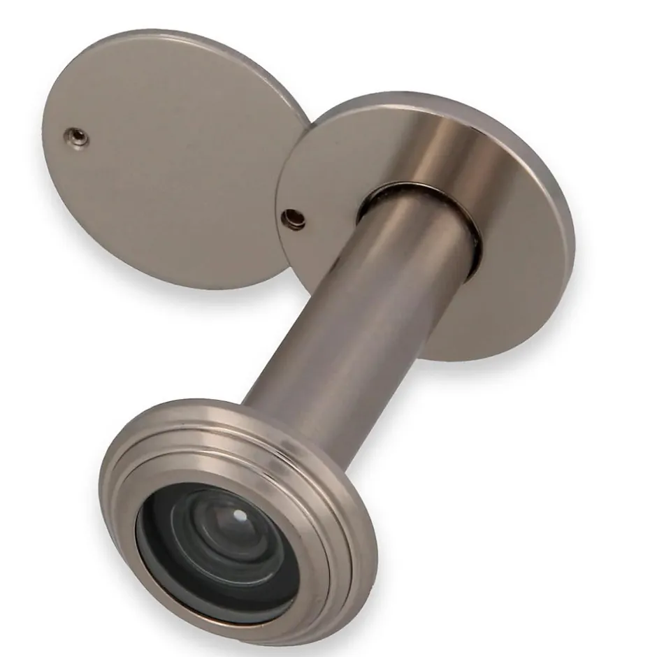 Judas optique, super angulaire. Lentille en verre. Corps et couvercle en acier. Certifié ignifuge UL. Conditionné individuellement.