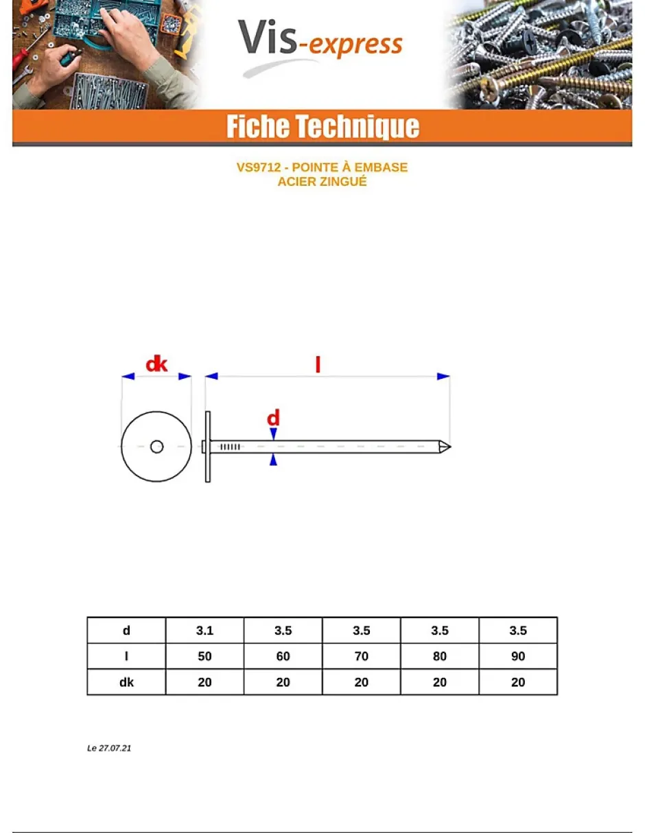 Kg de pointes Embase collerette RONDE Diamètre de tête: 20 Acier zingué 3.5X80 Autre références : 00RSTN 3663072493124