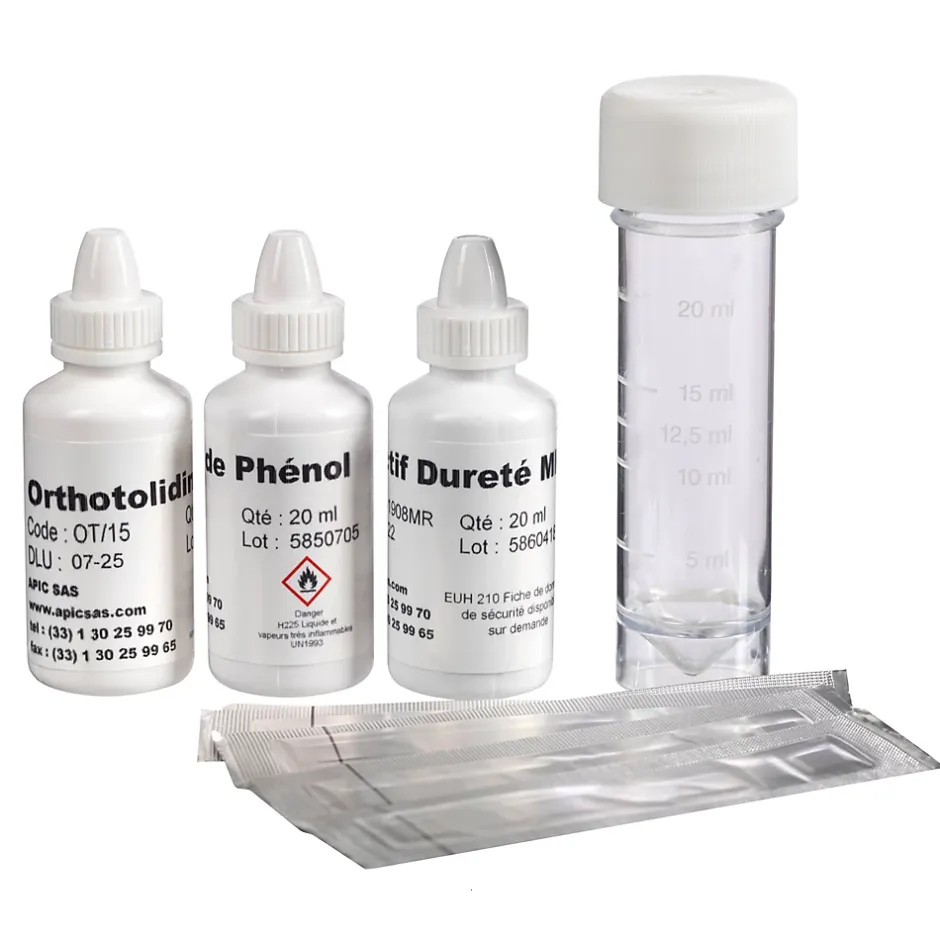 - Kit TH (Titre Hydrotimétrique) : Plus une eau contient de calcium et de magnésium (cal’aire), plus elle est dure