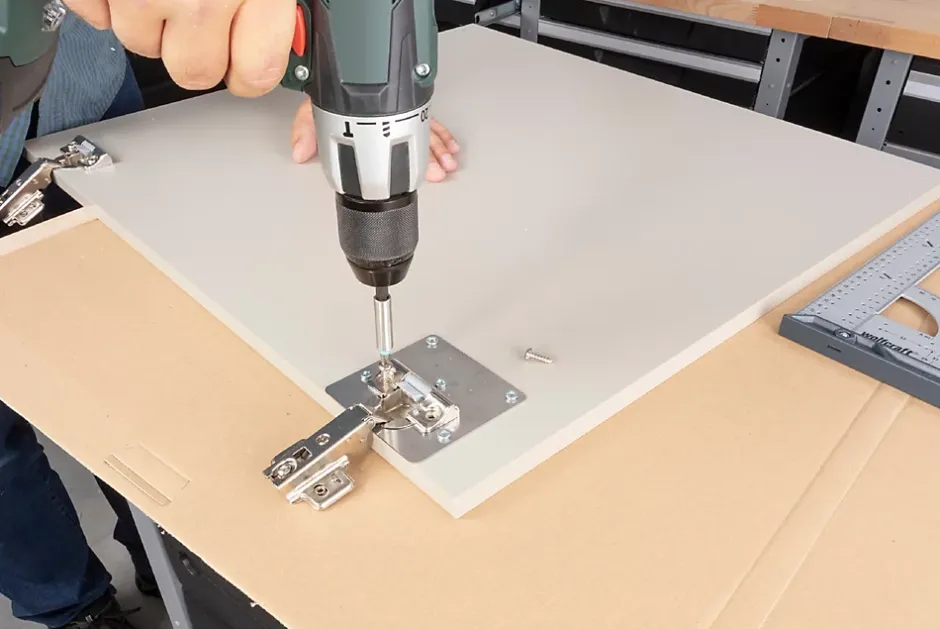 Ce kit de réparation de charnières invisibles de 17 pièces contient tous les outils nécessaires pour réparer deux charnières arrachées sur la porte de votre meuble. Les instructions illustrées étape par étape vous guident tout au long du processus pour une réparation rapide et efficace. Commencez par positionner le corps de la charnière dans la plaque de montage, puis insérez-la dans le trou arraché de la porte. Utilisez le foret centreur pour pré-percer les cinq trous destinés au vissage de la plaque de montage. Cet outil permet un perçage guidé à 90° et limité en profondeur, garantissant ainsi une fixation précise de la plaque. Une fois la plaque de montage fixée, préparez le vissage de la charnière en plaçant le foret centreur dans les trous prévus pour les vis de la charnière et percez. La dernière étape consiste à visser les deux dernières vis – votre charnière est à nouveau fonctionnelle.
