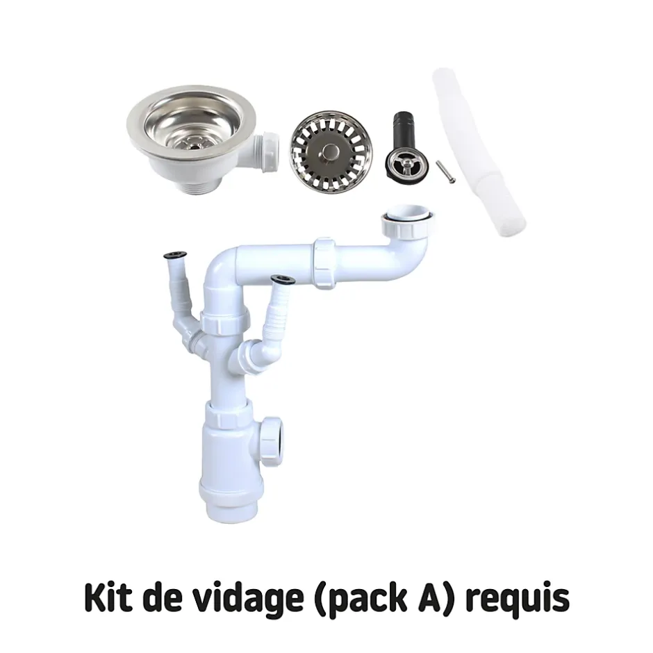 Kit de vidage A manuel évier avec panier acier inoxydable 1 bac