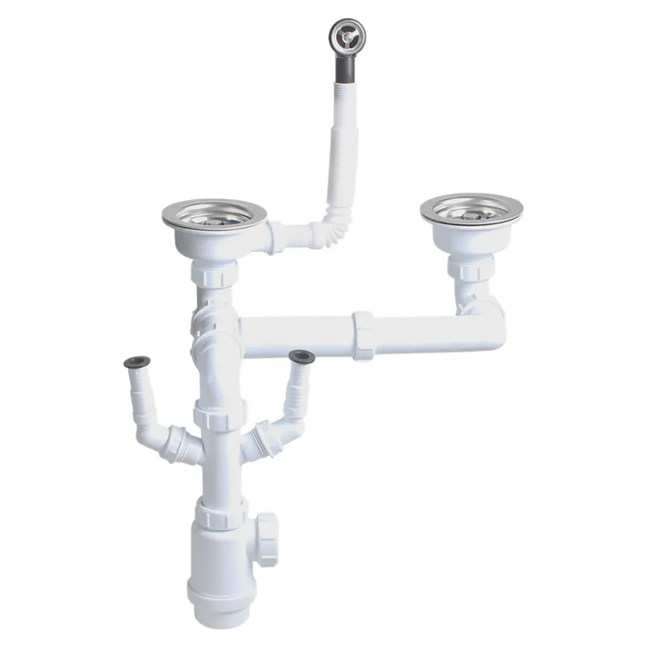 - Évacuation manuelle pour éviers en acier inoxydable ou en composite avec 1,5 ou 2 bacs.