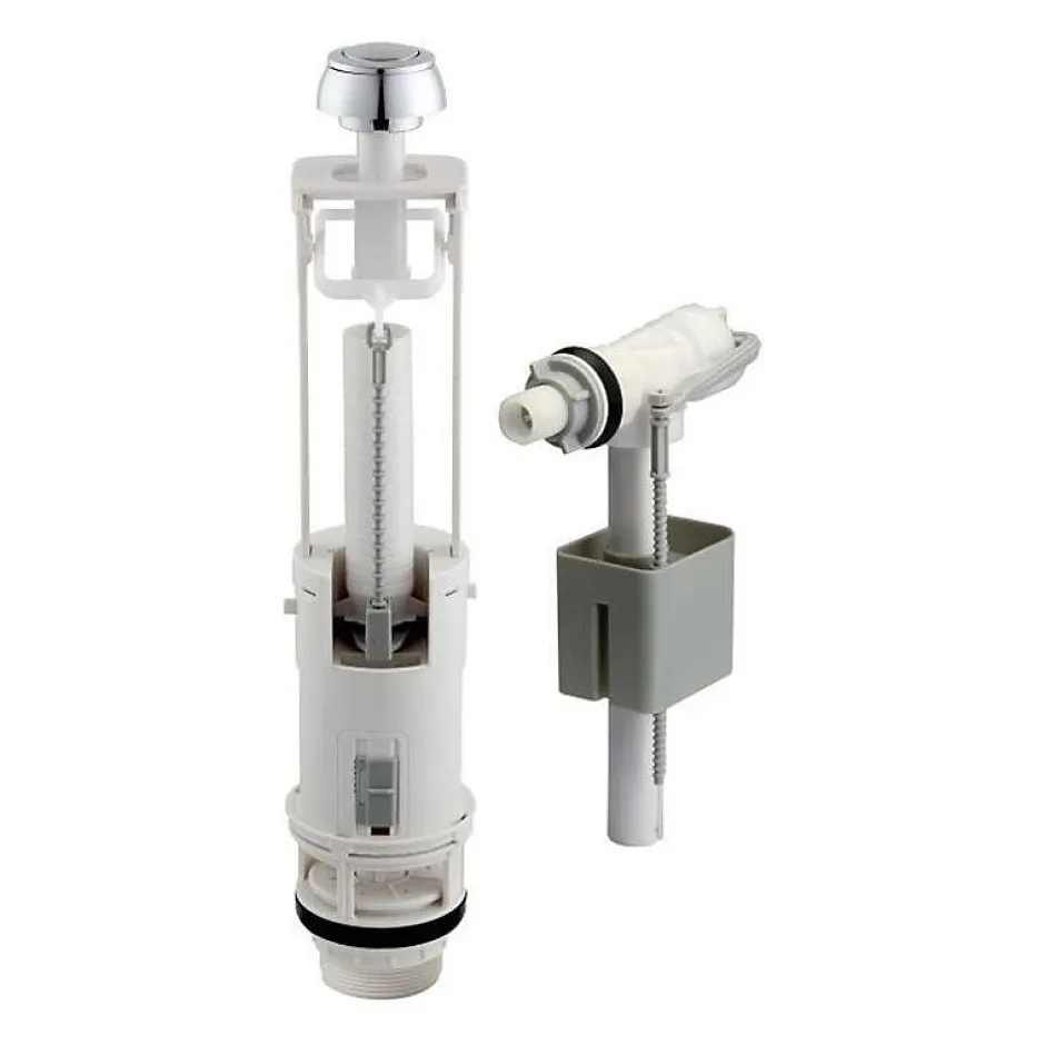 Kit mécanisme chasse d’eau avec robinet flotteur pour réservoirs WC apparents et encastrés. Commande de chasse par bouton poussoir, double débit 3/6 litres. Robinet flotteur silencieux classe 1 avec fermeture hydraulique, anti-siphonage et réglable par molette. Montage facile, hauteur réglable de 28 à 43 cm, raccordement M 3/8 (12×17). Dimensions compactes 14,5 x 5,4 x 23,5 cm. Sécurité sanitaire optimisée grâce à clapet anti-refoulement intégré et trop-plein réglable. Pression d’alimentation 0,5 à 10 bars.