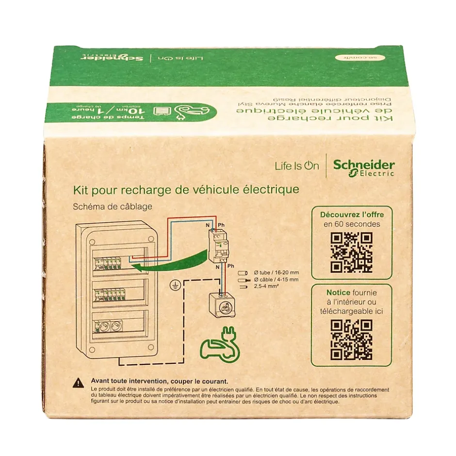 Ce kit composé de la prise de courant renforcée 16A / 250V, en saillie, étanche IP55 et robuste IK08, et sa protection permet de recharger un véhicule électrique ou hybride rechargeable dans des environnements intérieurs et extérieurs difficiles (garage, parking…). Ce lot est livré complet et prêt à l’emploi.