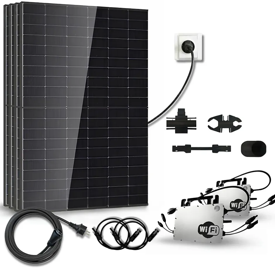 Avantages du kit solaire Plug & Play 1820Wc DMEGC Hoymiles Wi-Fi : Maximise le confort énergétique, même par temps nuageux. Micro-onduleur HMS-1000W-2T avec optimisation individuelle par panneau. Installation au sol simple et rapide. Kit compact 1,82 kWc, sans raccordement complexe. Wi-Fi intégrée pour suivi sans accessoires supplémentaires. 8 rallonges MC4 1 m incluses pour installation flexible. Kit évolutif : jusqu’à 4 panneaux par prise. Production estimée jusqu’à 2 809 kWh/an et économies d’environ 705 EUR/an. Alimente simultanément réfrigérateur, box, LED ou lave-linge éco.