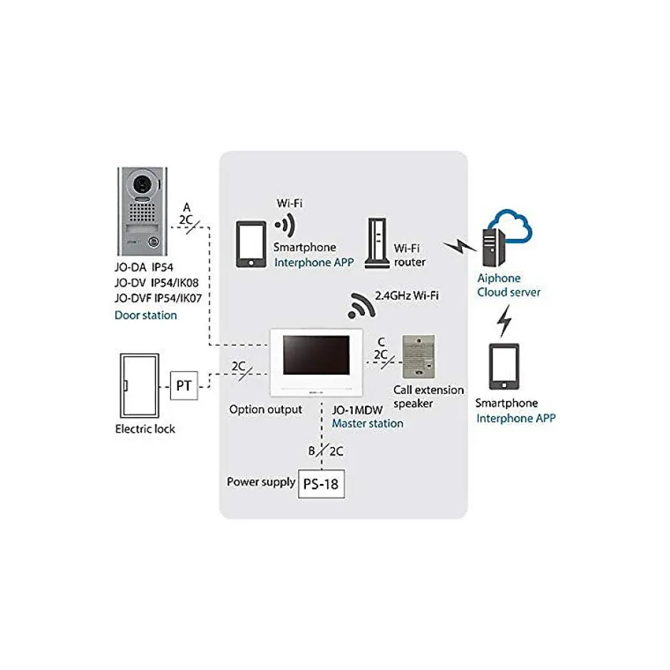 - Compatible avec accessoires AIPHONE (moniteur secondaire JO1FD) pour extension du système