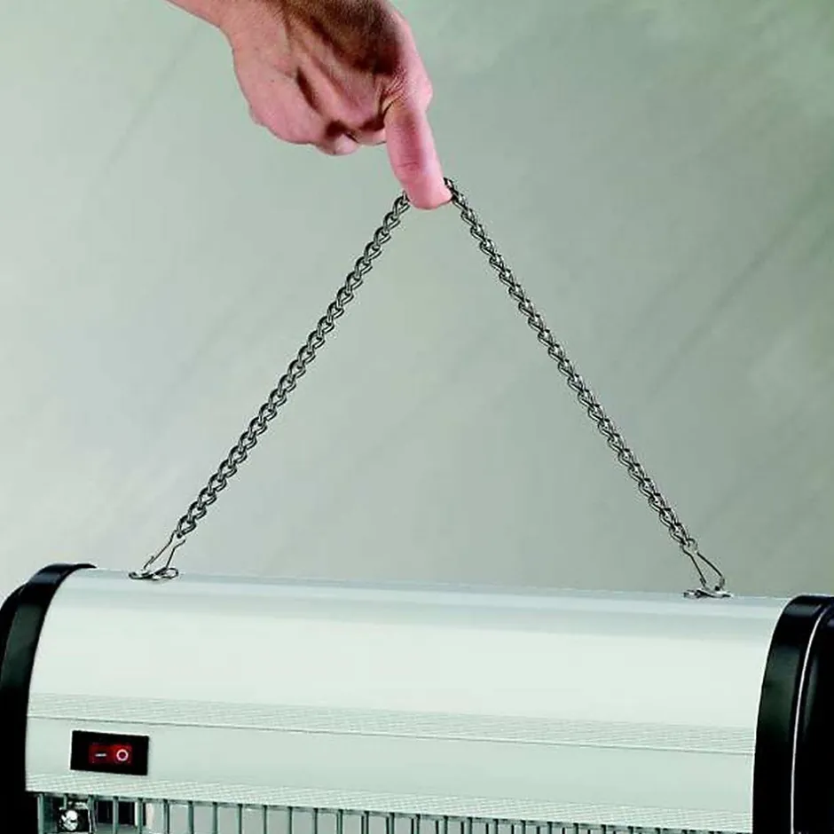 - Installation facile : À poser ou à suspendre grâce à la chaîne incluse en intérieur ou extérieur, à l’abri de l’eau et de l’humidité.