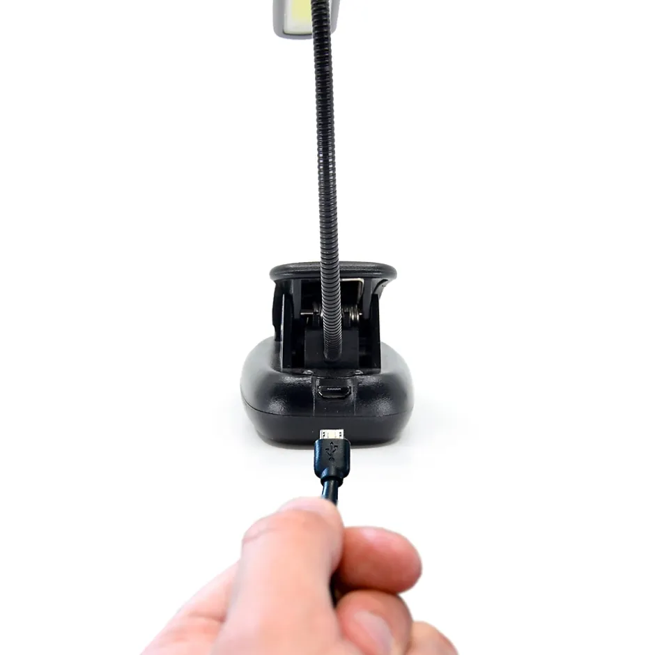 Une lampe de lecture astucieusePensée pour vos moments de lecture, la lampe se fixe comme bon vous semble. Vous pouvez la pincer à votre livre, elle fera marque-page. En tout cas, elle se transporte partout : au lit bien sûr, mais aussi dans votre salon, en voiture ou en train. Une lampe pratiqueEasyMate vous propose un éclairage pratique, car petit, léger (78 grammes) et transportable. Non seulement elle prend peu de place, mais en plus, elle se recharge en trois heures et demie. L’atout flexibilité de la lampeLe câble (21 cm.) de la lampe est flexible, il peut tourner sur 360°. Vous le positionnez à votre guise, sans risque que la lampe ne tombe. Son câble reste fixé comme vous l’avez décidé. Le câble ne se déforme pas non plus. Trois modes d’éclairageGrâce à trois LEDs blanches, profitez de trois modes d’éclairage :100% d’intensité avec une autonomie de 6 heures à 150 lumens (15 watts)75% d’intensité avec une autonomie de 100 heures à 100 lumens (10 watts) 50% d’intensité avec une autonomie de 18 heures à 75 lumens (environ 8 watts) Découvrez le contenu du kitCONTENU DU KIT :La lampe avec sa pince incorporée et son câble flexibleLe câble pour recharger la lampe <p style= »text-align:ju