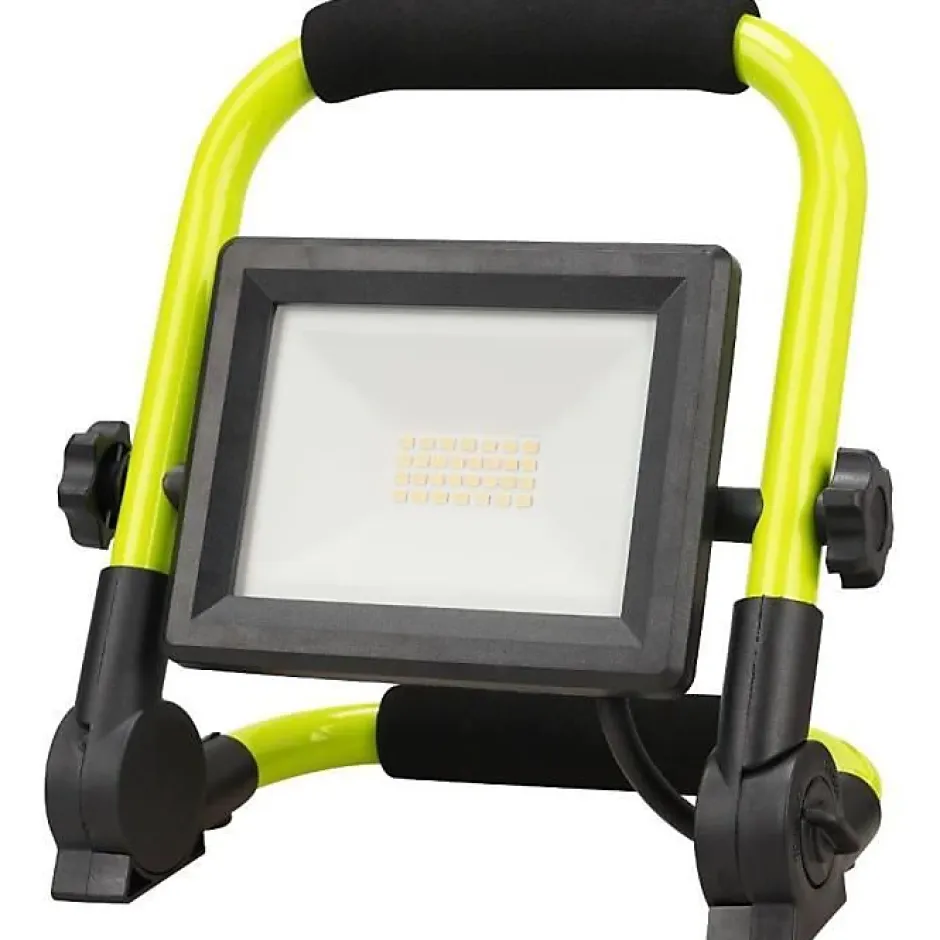 Lampe de travail LED RETLUX 20 W (2000 lm) blanc froid 4000 K, IP65 IK10, câble 2 m, angle 110°, compacte et robuste, conçue pour chantier intérieur et extérieur.
