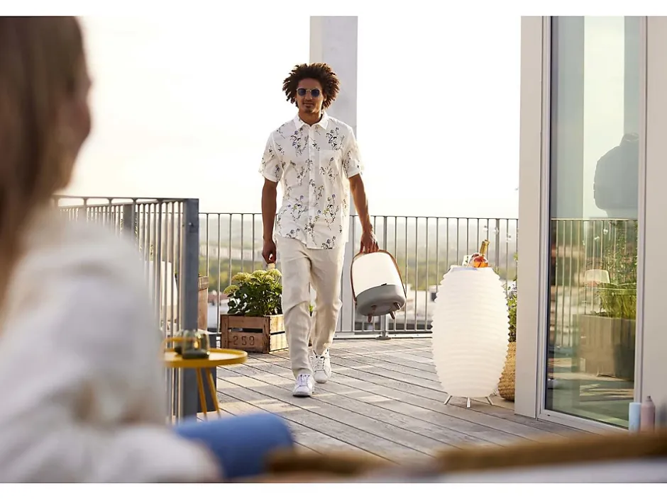 Lampe LED nomade Bluetooth « Lite-up Play » Il est désormais possible d’écouter votre musique préférée à travers uneenceinte Bluetoothde haute qualité et unelampe LED élégante; le tout en un. Lumière d’ambiance Vous allez apprécier sonéclairage d’ambiancepartout où vous vous trouvez grâce à lalumièrechaude et agréable qu’elle émet. De la musique à emporter Lalampe LED nomade avec Bluetooth « Lite-up Play »est unappareilqui vous permet d’écouter un son de haute qualité tout en émettant unelumière ambiantechaleureuse. Vous aurez la possibilité de connecter le haut parleur avec un autre appareil Lite-Up Play pour une expérience audio particulière. Un design nordique et pratique Cette lampe permet d’éclairer votre pièce avec élégance. Ses finitions lui permettent de facilement se fondre dans votre décoration. Elle est dotée depieds en boiset d’unepoignée assortie, ce qui vous permet de la transporter où vous voulez. Coloris : Earth.Dimensions : 29 x 40 cm.Materiau : Poignée en bois / corps principal en PE Pieds en bois avec surface en caoutchouc de silicone.Lumière LED : 3000 Kelvin.Batterie : Jusqu’à 10 heures de jeuJusqu’à 18 heures en utilisant la lampe seule 2600 mAh.Chargement : 4 heures / USB Type-C.Bluetooth : V 4.2 / portée de 10 mètres.Haut-parleur : 8W / Son à 360 24W de puissance musicale de pointe.le + produit : Lumière LED 100% portable Batterie rechargeable Haut-parleur Bluetooth Musique sans fil Possibilité de coupler l’enceinte avec un autre Lite-up Play.Cerfifications : CE / RoHS.Poids : 2.03 kg.Colisage : 1 colis : – 0,325 x 0,325 x 0,395 m, 2,03 kg.