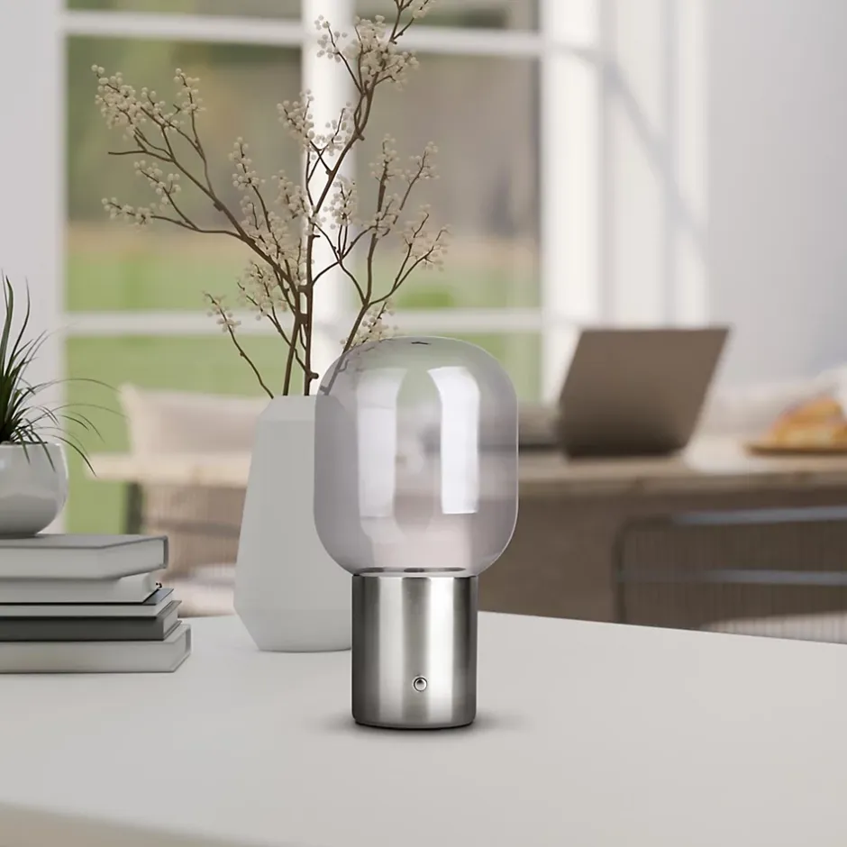 La lampe de table ALBERO est un bijou pour chaque espace de vie. Les lampes de table sont légères et portables, elles peuvent être déplacées sans effort pour répondre à différents besoins d’éclairage. Elles offrent une lumière ciblée, idéale pour des tâches telles que la lecture, le travail ou le bricolage, ainsi qu’une lumière d’ambiance pour éclairer certaines zones de la pièce de manière ciblée sans pour autant éclairer toute la pièce. Ils peuvent également servir d’éléments décoratifs, compléter le style d’aménagement et mettre des accents. Ce luminaire de style rétro séduit par son aspect décoratif et son design arrondi – idéal pour tous ceux qui aiment l’originalité. Que ce soit dans le salon, la chambre à coucher ou le bureau, ce luminaire chromé en métal et en verre attire tous les regards. Le diamètre de la lampe de table est de 13 cm et sa hauteur de 25 cm. Elle est dotée d’un capteur tactile et d’un port USB de type C. Avec une longueur de 50 cm, le câble offre suffisamment de marge de manœuvre. Grâce à une lampe de table équipée de 1 LED sur 1 platine LED, vous apportez de la lumière dans l’obscurité. Le design séduit par l’intégration complète de l’éclairage. Ce luminaire est conforme à la classe 3. Avec une capacité de 4000 mAh et l’utilisation de Li-Ion, cette batterie IFR18650 est la solution optimale pour un fonctionnement fiable sur batterie. Il est possible de faire varier l’intensité de la lampe et de l’adapter ainsi aux besoins d’éclairage du moment. Créez l’ambiance qui vous convient avec notre lampe de table de haute qualité et donnez à votre maison un sentiment de confort et de style dans chaque pièce.
