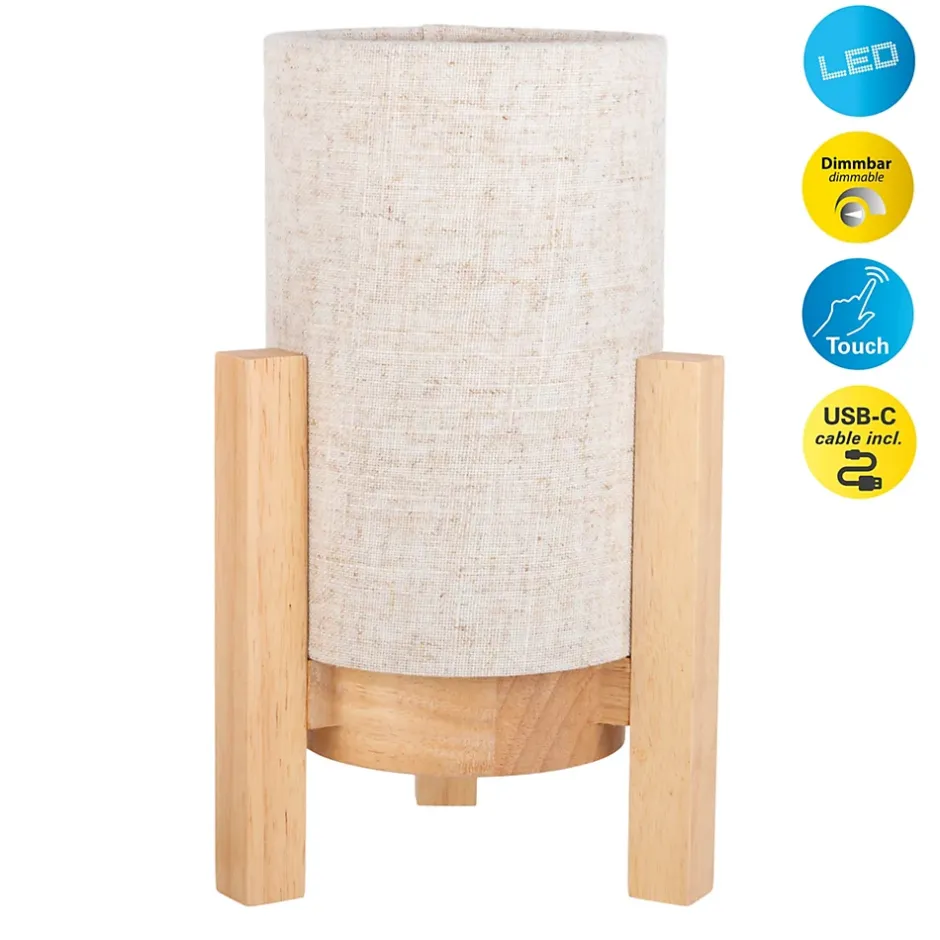La lampe de table de notre collection MADITA – un point fort pour votre maison Les lampes de table sont légères et portables, ce qui permet leur utilisation flexible dans différents endroits de la maison. Elles offrent à la fois une lumière ciblée pour des activités telles que la lecture, le travail ou le bricolage, et une lumière d’ambiance pour mettre en valeur certaines zones de la pièce sans pour autant éclairer toute la pièce. De plus, ils servent d’éléments décoratifs qui peuvent souligner le style d’aménagement ou créer des accents captivants. Avec sa forme cylindrique et son design naturel, cet article de style scandi attire l’attention de tous ceux qui aiment la noblesse. Le luminaire en textile mélangé nature et en bois (hévéa) naturel attire le regard dans chaque pièce. La structure huilée/décapée et l’abat-jour recouvert forment une unité harmonieuse et un ensemble de bon goût. La lampe de table mesure 16,2 cm de long, 16,2 cm de large/profondeur et 25 cm de haut. Le diamètre de la lampe est donc de 16,2 cm. La lampe de table dispose d’un capteur tactile et d’un port USB de type C. Avec une lampe de table équipée de 1 LED sur 1 platine LED, vous apportez de la lumière dans l’obscurité. Si nécessaire, l’ampoule est remplacée par un spécialiste. Ce luminaire correspond à la classe 3. Avec une puissance totale de 56 lumens et une température de couleur de 2955 kelvins, il assure un environnement agréable. Grâce à la possibilité de varier l’intensité, la luminosité peut être adaptée aux besoins. Créez l’ambiance souhaitée avec notre lampe de table de haute qualité et donnez à votre maison un sentiment de confort et de style dans chaque pièce.