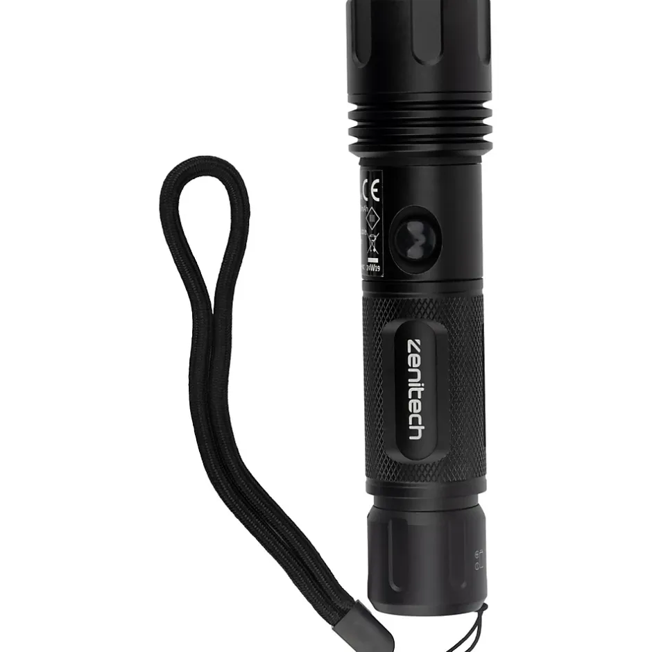 Caractéristiques de la lampe torche LED rechargeable USB 500lm – Zenitech :Modèle : lampe torche rechargeable LEDCouleur(s) : noirIntensité lumineuse : 160/500lmAutonomie : entre 5 et 7hPortée 50m (haute intensité), 25m (basse intensité)2 modes d’éclairages : une fonction zoom + flash clignotantMatériau : aluminiumAvec dragonneTemps de charge : 5hBatterie Li-Ion 3.7V 2200 mahChargement par câble USB (type A)Longueur du câble : 0.5mLa lampe torche rechargeable LED est un outil indispensable pour tous vos besoins d’éclairage, que ce soit lors de vos activités de plein air, en cas de coupure de courant ou pour des réparations nocturnes.Avec une intensité lumineuse de 160 à 500 lumens, elle offre une portée de 50 mètres en haute intensité, garantissant une visibilité optimale dans l’obscurité. Grâce à ses deux modes d’éclairage, incluant une fonction zoom et un flash clignotant, cette lampe s’adapte parfaitement à chaque situation.Sa batterie Li-Ion de 2200 mAh vous offre une autonomie impressionnante de 5 à 7 heures, et son temps de charge de seulement 5 heures via un câble USB (type A) facilite son utilisation quotidienne. Fabriquée en aluminium, elle est à la fois robuste et légère, tandis que la dragonne intégrée assure une prise en main sécurisée. Avec cette lampe torche, vous êtes prêt à affronter toutes les situations, jour comme nuit.