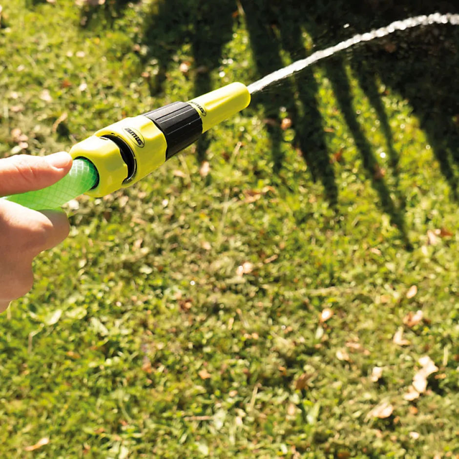 Lance d’arrosage réglable. Fabriqué en plastique ABS et caoutchouc de grande qualité. Grand débit d’eau. Recommandé pour les grandes distances.