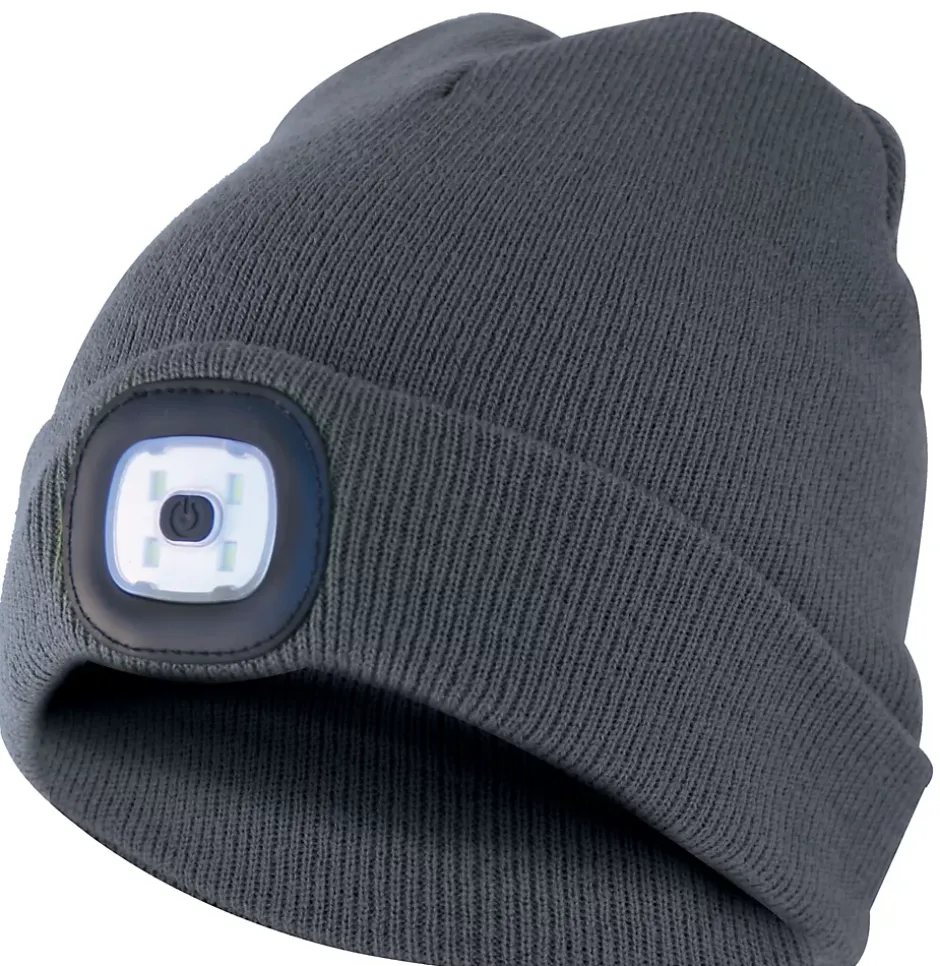 Ce bonnet avec lumière frontale comporte 4 LED ; éclaire jusqu’à 20 mètres de distance ; la lumière LED est amovible pour le lavage et la charge. 3 niveaux de luminosité : 100 % (10 heures de lumière environ), 50 % (15 heures de lumière environ), 25 % (20 heures de lumière environ). Batterie Li-ion 250 mAh. La lumière frontale est munie d’une prise USB : vous pouvez la recharger facilement dans votre PC, chargeur de téléphone, le port USB de la voiture. Ce bonnet LED est très léger et parfait pour les activités de plein air telles que la promenade du chien, la course, la chasse, le camping, les voyages. Il reste chaud et vous protège pendant la saison froide. La lumière LED est facilement amovible pour vous permettre de le laver dans la machine à laver. 100 % acrylique, unisexe.