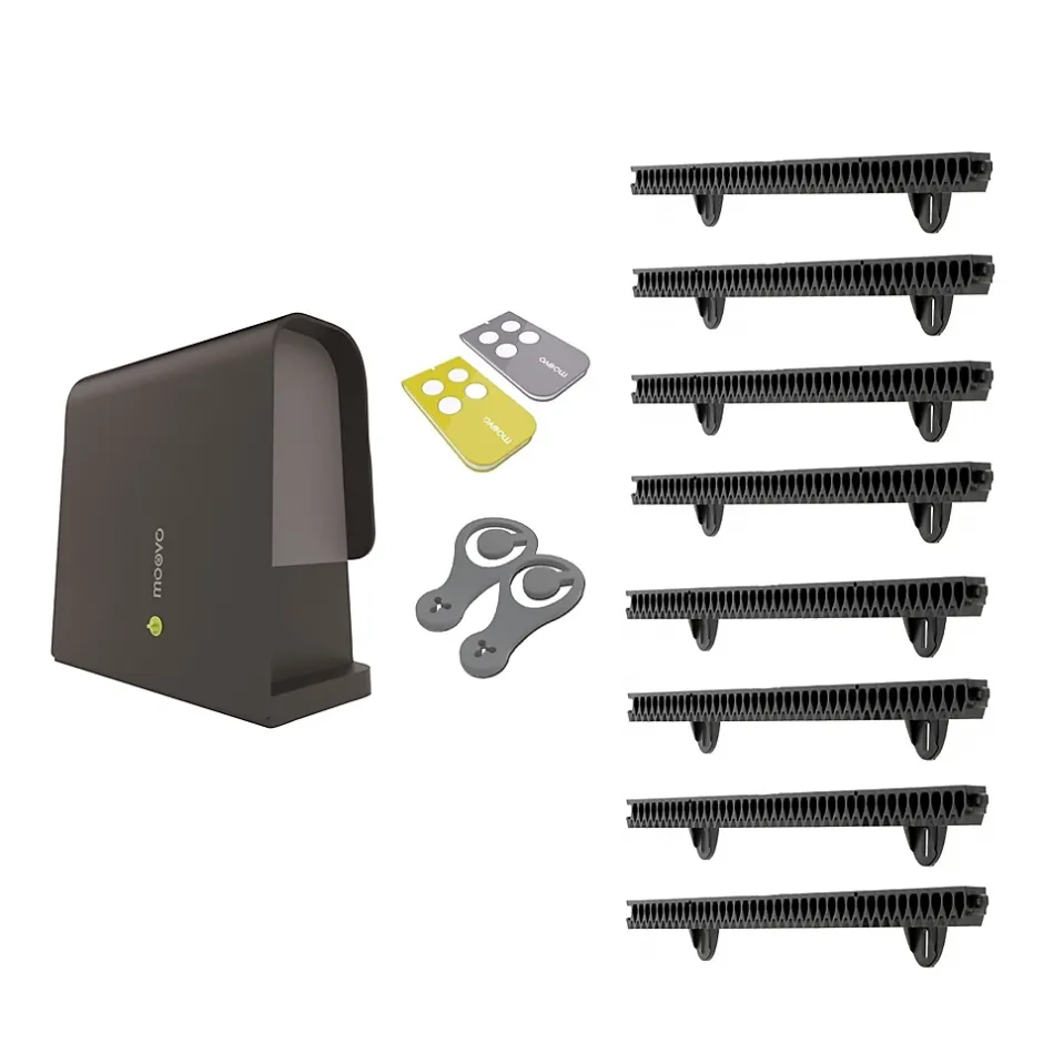 Kit d’automatisation Moovo LN432KM/02 Easy Pack pour portails coulissants : puissance et simplicité d’installation pour portails jusqu’à 5 m de largeur et 300 kg. Système livré complet (motorisation avec logique intégrée, crémaillères, télécommandes, clés de déblocage, quincaillerie et notice), avec autoprogrammation, détection d’obstacles et 4 vitesses réglables pour un usage sûr et confortable.