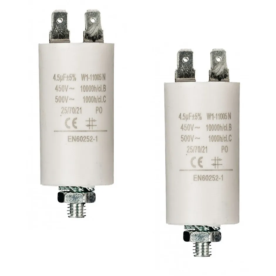 LOT 2 X CONDENSATEUR 4.5UF / 450 V + COSSES CONDO 4,5MF DESCRIPTION PRODUIT• Capacity:4.5 uF • Voltage:450 V • Dimensions:Ø 30 x 57 mm