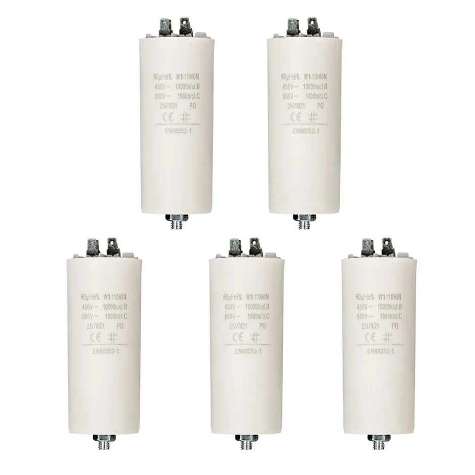Lot de 5 CondensateursCondensateurs ronds dans un boîtier ignifuge. Isolés et hautement étanches à l’eau.Facile à monter grâce aux connecteurs mâles et la vis M8. Convient pour lampes 50/60Hz et moteurs.Capacity: 60.0 uFVoltage: 450 VDimensions: Ø 50 x 116 mmCapacité 60 µFTension 450 VType MoteurTerre OuiConnexion AMP femellesCondensateur 60µf, 60mf, 60 microfarads 450V COSSES pour moteur électriquePeut remplacer tout condensateur permanent de 60 µF dont la tension plaquée est comprise entre 400V et 500V, dont (entre autres)ITALFARAD séries RP2.60 et RP3.60DUCATI série 4-16-10 et 4-16-17ARCOTRONICS séries 1.27-4ACMKP 1.27-6CCMKP 1.27-7LAMKP COMAR Condensatori type MKA60-450 – 60µF – 450V – Sortie cosses
