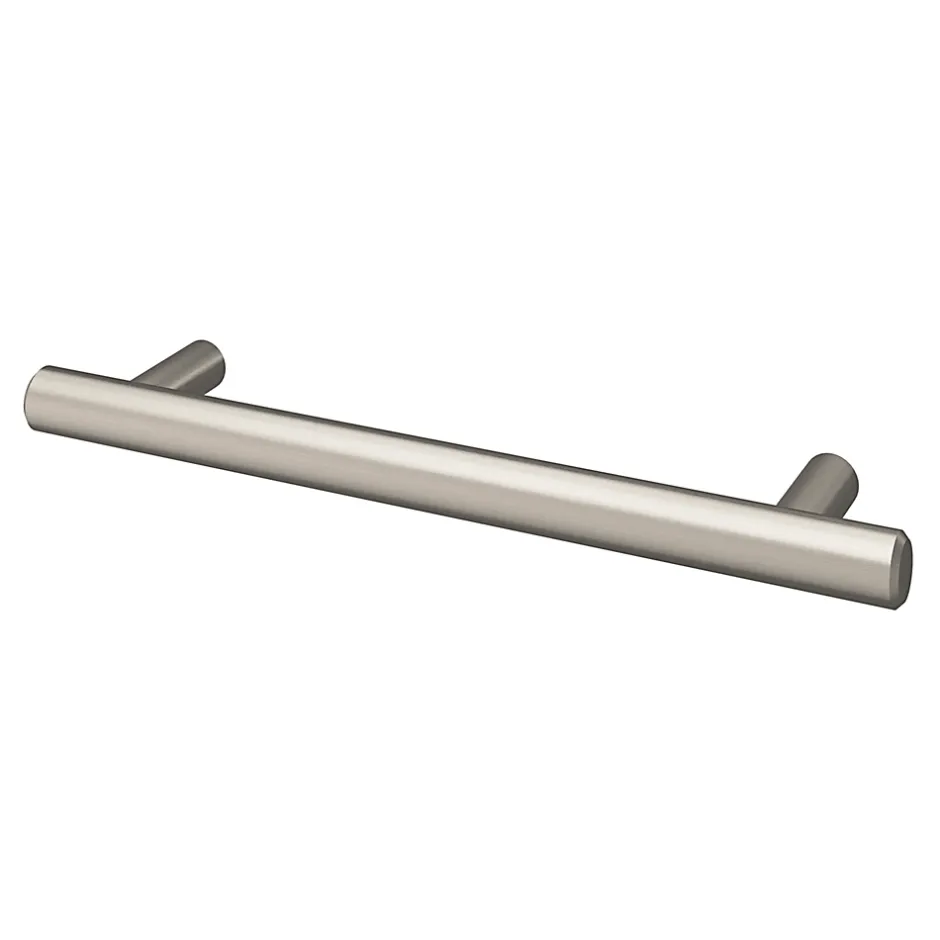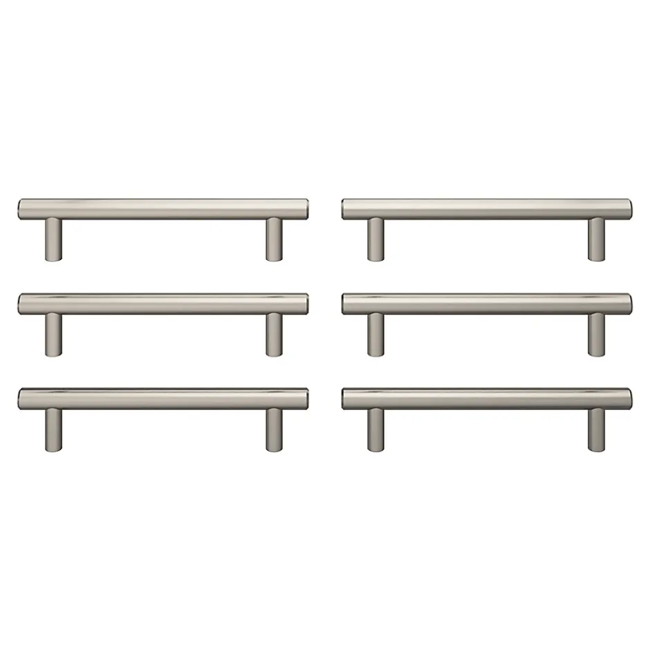 Lot 6 poignées de meuble en T GoodHome Dizel acier effet nickel satin gris l.168mm x l.12mm x H. 35mm entraxe 128mm
