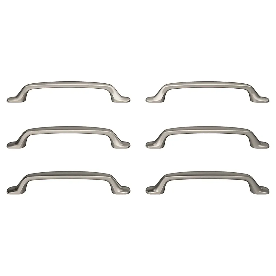 Lot 6 poignées de meuble nœud GoodHome Govlin aluminium effet nickel satin gris l.164mm x l.20mm x H. 24mm entraxe 128mm