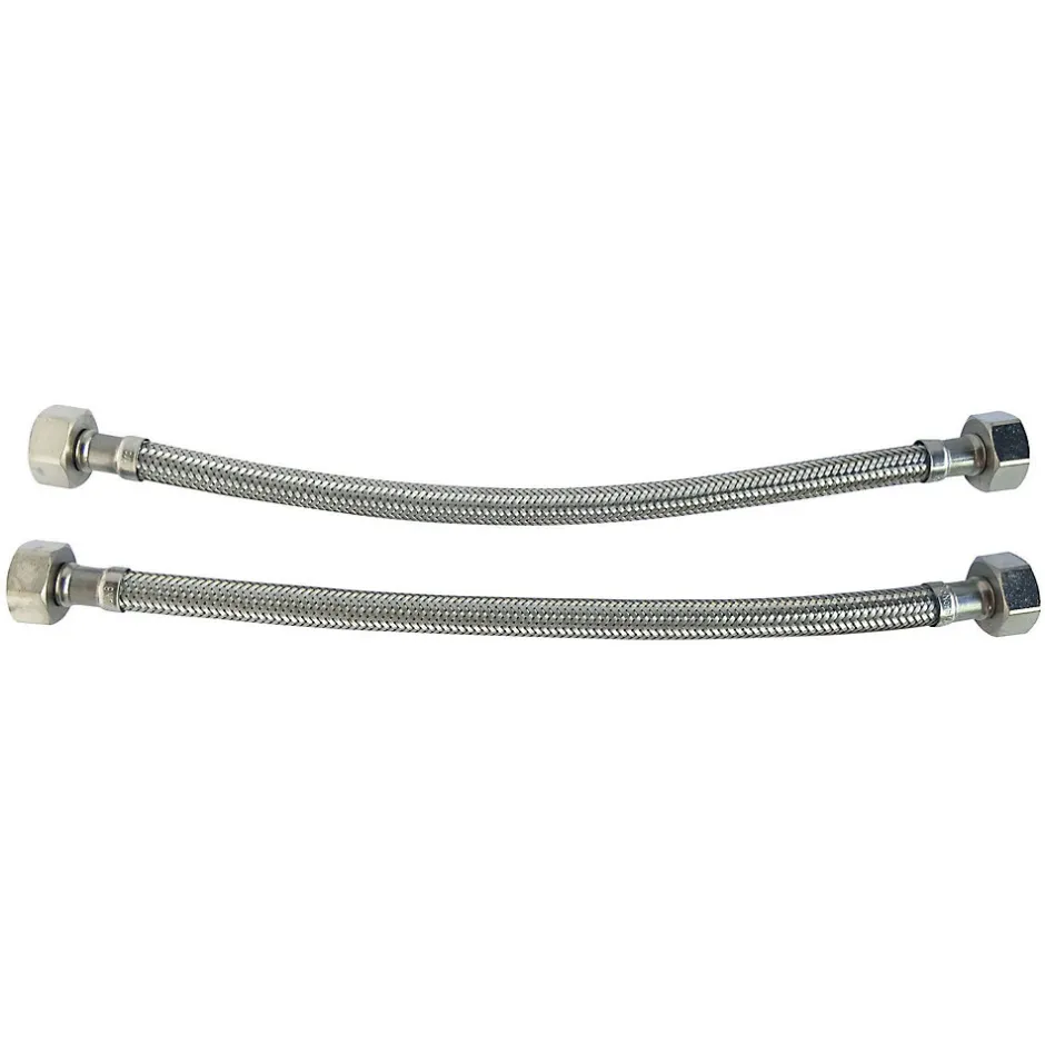 Lot de 2 flexibles de raccordement sanitaire. – Raccords 2 écrous tournants 1/2″ . – Les raccords en matière laiton nickelé appportent une meilleure durabilité dans le temps. – Tuyau en EPDM tressé en acier inoxydable assurant une parfaite résisance mécanique et une protection anti-corrosion. – Etanchéité assurée par joint plat intégré pour une facilité et une rapidité d’installation. – La souplesse du flexible permet d’accéder aux endroits les plus restreints. – Produit répondant aux exigences à la norme ACS et à la certification QB pour une garantie de fiabilité sur vos installations sanitaires.