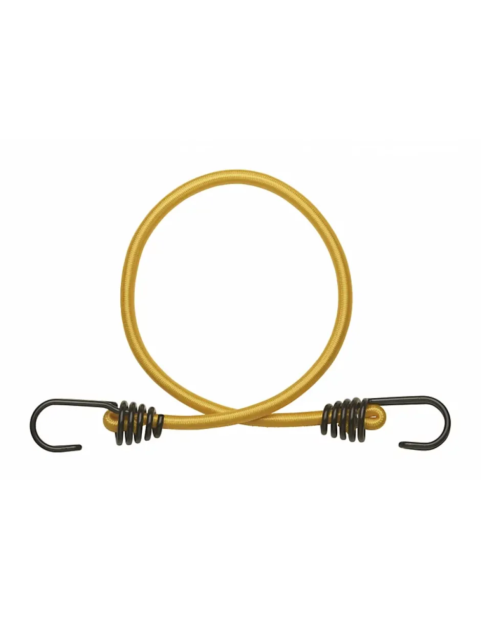 Lot de deux tendeurs, cordon en caoutchouc de latex, crochets en acier double. Jaune. Longueur 60cm. Pour rangement, camping, vélo, remorque …